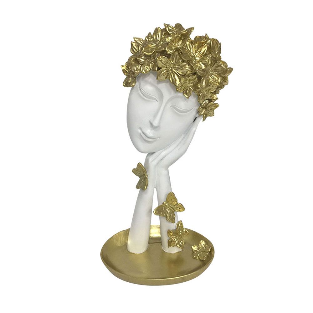 Εντυπωσιακό διακοσμητικό άγαλμα σε λευκό και χρυσό, που συνδυάζει κομψότητα και καλλιτεχνικό χαρακτήρα. 💫